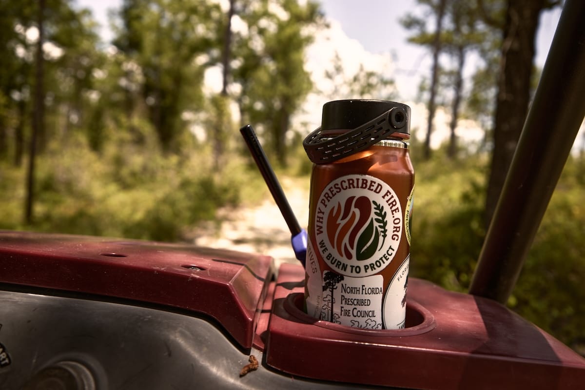 “Are you going to get any torch time?” the Georgia volunteer asks me with a raised eyebrow. His prescribed burn association has organized today’s burn. The association, coordinated by Tall Timbers, functions a bit like a mutual aid group for teaching fire. One member on their own might not have the necessary equipment or experience. Together, they do. And one of the keystones of the association is that everyone should get their hands dirty on a burn. So Jensen hands me a drip torch.