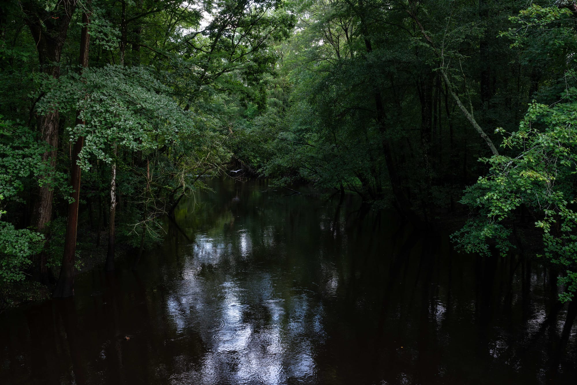 The clouds create a stained-glass sky; small slivers of sunshine peek through the leaves. Birds call. Ripples appear in the water. Highway 421 is typically loud, heavy with traffic from eighteen-wheelers and farm equipment. But the forest deadens those sounds and a hush settles over the river. It feels as if I’ve entered an entirely new world, one that is miles away from the town I grew up in, rather than right in the middle of it. It’s a tiny oasis and I’m awestruck by its existence, that it’s been here all along. I understand why community elders keep referring to this place as a sort of sanctuary.