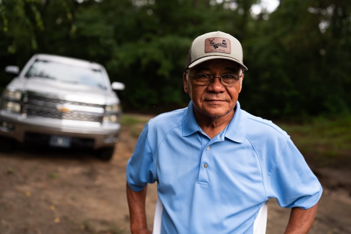 I meet Kullen Bell and Phillip Bell in the grassy parking lot. They head up the tribe’s Coharie River Initiative, taking visitors down the river and leading the continuing restoration efforts. They load two kayaks into the bed of an old, grey, rectangular Chevrolet truck idling nearby. Kullen tells Mr. Phillip which river route we’ll be taking today. Mr. Phillip looks up at the darkening sky and tells us to hurry up before the rain comes and ruins our paddle.