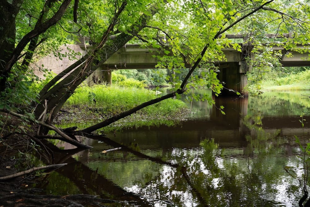 The clouds create a stained-glass sky; small slivers of sunshine peek through the leaves. Birds call. Ripples appear in the water. Highway 421 is typically loud, heavy with traffic from eighteen-wheelers and farm equipment. But the forest deadens those sounds and a hush settles over the river. It feels as if I’ve entered an entirely new world, one that is miles away from the town I grew up in, rather than right in the middle of it. It’s a tiny oasis and I’m awestruck by its existence, that it’s been here all along. I understand why community elders keep referring to this place as a sort of sanctuary.
