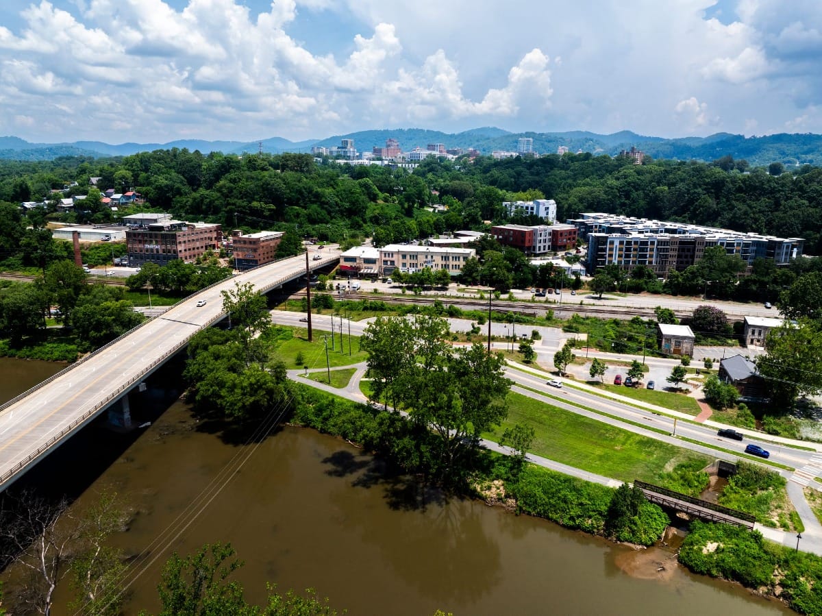 The French Broad River can feel like it runs in the wrong direction: it flows not south but north for 210 miles from its headwaters outside of Rosman, North Carolina, before joining the Tennessee River near Knoxville. A half dozen towns have sprouted along the French Broad’s corridor, leaning heavily on the river as a cultural and economic driver, first for farming, later for industry, and most recently for recreation.