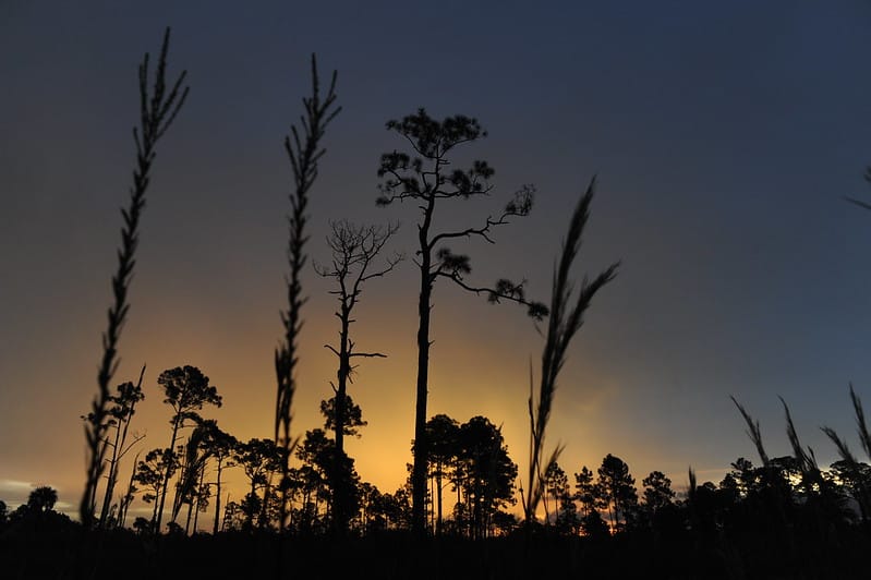 While fewer than one hundred fifty ghost orchids have been found in Cuba, southern Florida is their primary refuge, home to most of the extant population. Florida was once a vast expanse of shallow wetlands spread atop a low limestone shelf. (This helps explain why the ghost orchid evolved to grow on tree trunks: it would die on the flooded ground.) Before the nineteenth century, South Florida was filled with tall pines and seemingly endless cypress swamps. Most of the trees eventually fell to the axes of loggers. Over two hundred years, as the state developed, about half of its wetlands were logged and drained. By 1987, Florida’s plywood mills were believed to have chewed through 13.1 million cubic feet of cypress wood. Data from the Global Forest Watch indicate a 29 percent decrease in tree cover in Florida in the new millennium alone, a loss of more than 5 million acres. But in the refuge where Herdman’s research began, there are still long channels of the remaining trees following the waterways that snake through the reserve.